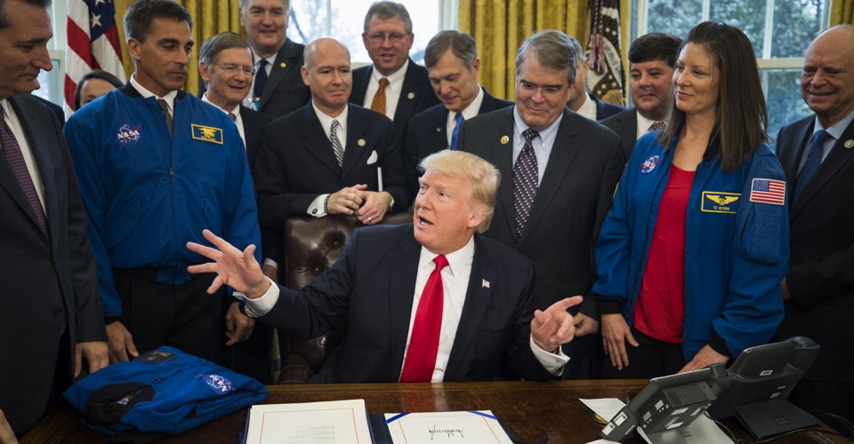 At about 8 a.m. on Monday, reporters called into a press conference with White House officials to discuss the day’s main event: a meeting of the National Space Council at noon. The conference was convened to discuss a spate of new proposals by the administration for, among other things, improving management of satellite traffic and cleaning up debris in Earth’s orbit. Not exactly thrilling stuff.