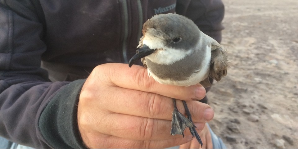 What the ringed-storm-petrel searchers needed was a clearer clue. And deep into their Markham’s research, the ROC birders got one. Late in 2016, an environmental consultant named Rodrigo Silva was surveying the desert for a solar project near Diego de Almagro and found some strange holes in the ground. Silva, also a ROC member, suspected that the cavities belonged to storm petrels, but they were located in rolling hills, not in salt flats like the Markham’s nests. A few months later, Medrano-Martínez, Barros, de Groote, and ROC’s executive director Ivo Tejeda used their own money to mount a brief, three-day expedition to the place.* Each night, they strung fine-mesh nets over several cavities and checked them hourly, but without luck. Finally, early on their last morning, they caught a single bird. It was unmistakable: white and dark-gray feathers ruffled from entanglement, scythe-shaped wings, liquid-black eyes. A ringed storm petrel.