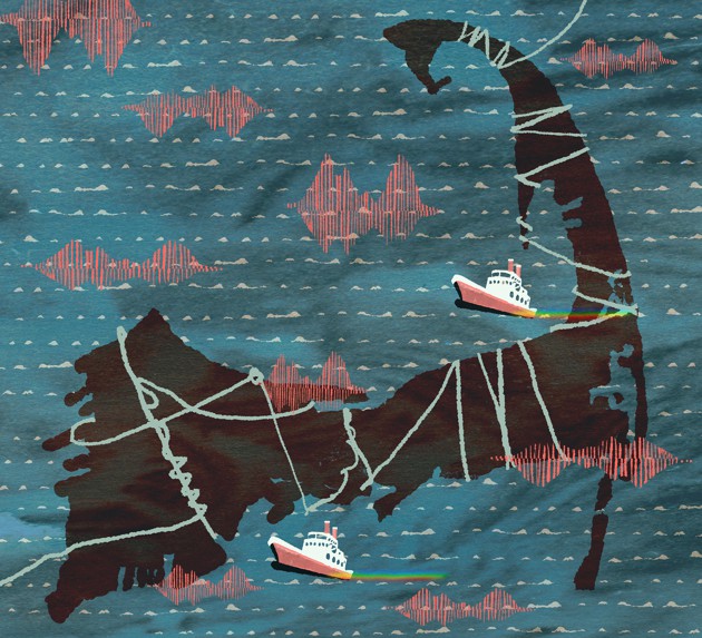 That division is an illusion, the marine biologist Scott Kraus told me when we met in his Boston waterfront office, just 30 miles of abominable traffic away. Kraus, the vice president for research at the New England Aquarium, pulled up an image on his computer screen of the U.S. East Coast, covered with a matrix of lines that crowded into the Atlantic. “That’s the shipping,” Kraus said. “Then we add fishing.” He clicked on another slide, which laid a new matrix on top of the previous one. And on he went, adding undersea pipelines and cables, coastal wind-energy fields, and military operations until the image looked like a quintuple-exposure photograph of a map of Manhattan. If you layered in the general public’s use of the ocean, he said, “I can’t even imagine. It would blow it out.”