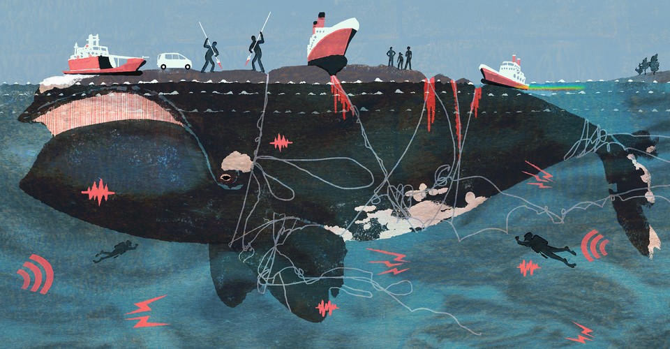 In acknowledging the brutality of certain hunting practices, we drew a baseline of human responsibility for the welfare of wild animals: We should not cause them undue suffering. In that, there has been plenty of room for controversy (a meat-is-murder activist, a leg-hold trapper, and a catch-and-release fly fisherman walk into a bar ...). Still, the baseline matters. It matters more and more, in fact, because everyday life for a growing roster of wild creatures has become so unpleasant, on our watch and by our hands, that their suffering calls for consideration by reasonable people. One of those animals happens to be a kind of whale, the North Atlantic right whale, which lives along the eastern seaboard of the United States and Canada. As one researcher put it: “We’re not actually going out and sticking them with a piece of steel anymore. We’re just ruining their lives.”