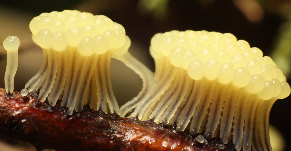 Likewise that very strange thing known as a cellular slime mold, which during one phase of its existence looks and behaves like a garden slug, but at another phase reveals itself to be a fine-tuned team of individual amoebae. When food is scarce, the amoebae aggregate into the slug, unified in their effort to crawl toward better habitat. They raise a stalk atop which sits a fruitlike body, and, when that opens, disperse spores. If the spores land in a place where food particles (bacteria) are available, they awaken as new amoebae.