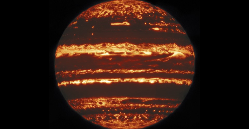 This view of Jupiter is quite the departure from the depiction many of us remember from science class, of the planet as a smooth marble with Creamsicle-colored bands and that signature stormy spot. The observations that gave us that classic image only skimmed the cloud tops. But this latest effort to observe Jupiter, which has produced one of the highest-resolution shots yet, dives deeper into the atmosphere, providing a view of the planet that makes it appear to be ablaze.