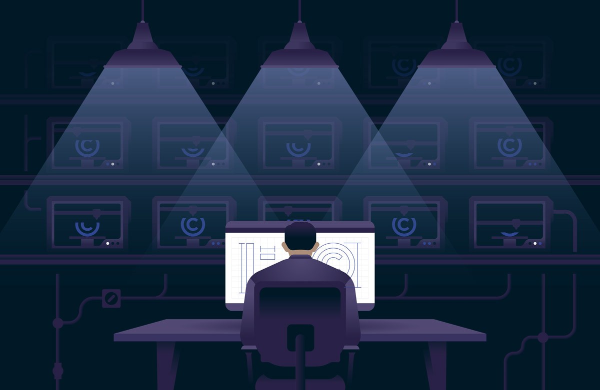 In a 3D-printing supply chain, the assets that are most valuable are also the most vulnerable: Unless they’re properly protected, digital designs and intellectual property will be easy prey for hackers. Illustration by Jordon Cheung