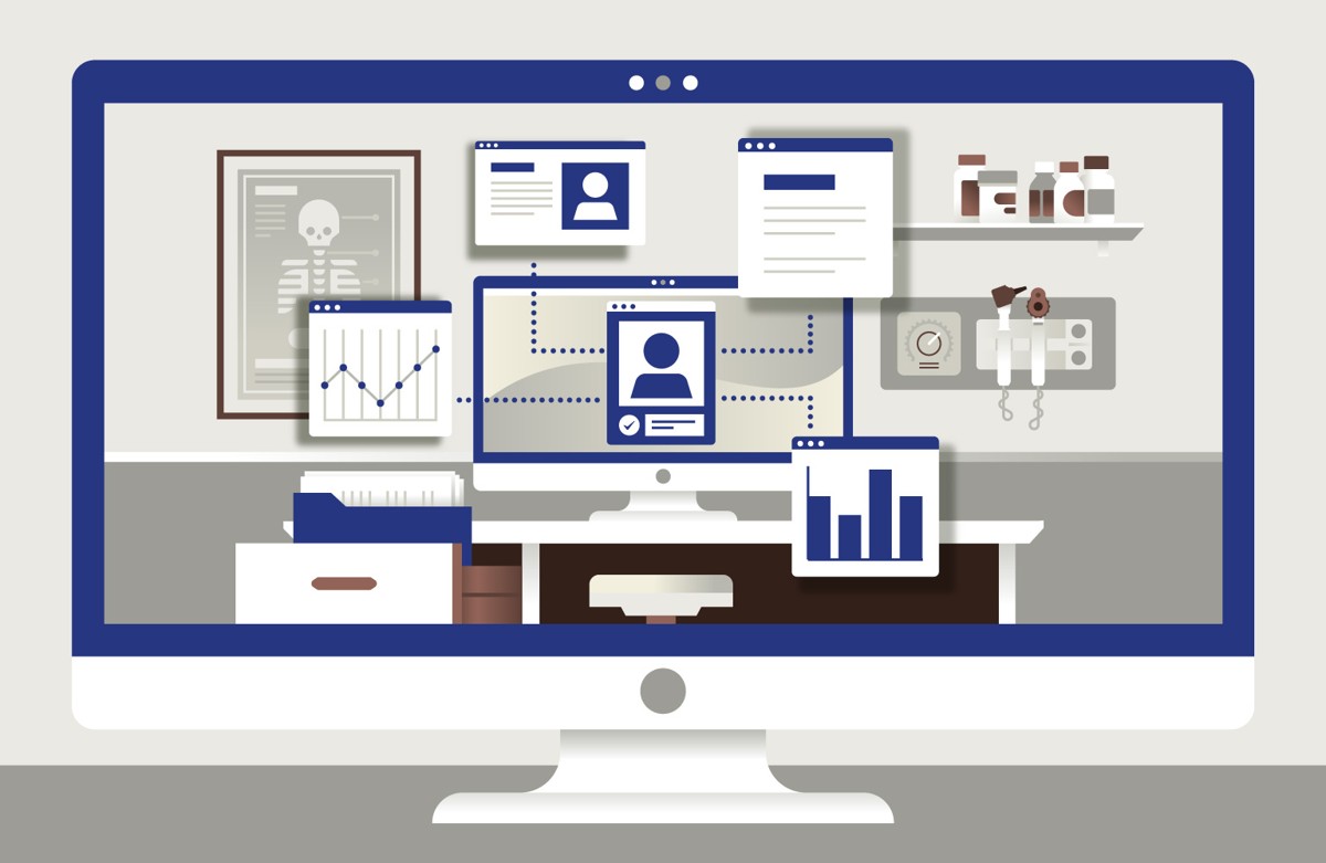 Now that private medical information is more valuable than ever, hopsitals and healthcare professionals need to balance virtual healthcare practices with security measures. Illustration by Jordon Cheung.