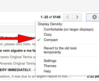 To me, this is a huge improvement over the default "Cozy" setting (see below). I like seeing more email subject lines at a glance, not fewer.