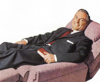 In the 1930s, a number of famous designers created unupholstered paramedical lounge chairs that are still in production today (for example, the Finnish architect Alvar Aalto's model for a tuberlosis sanatorium). At the time, the German brothers Hans and Wassili Luckhardt, working with the Hungarian entrepreneur and designer Anton Lorenz, created a molded wooden Siesta Medizinal chair for the international furniture giant Thonet. (Incidentally, Thonet's rocking and reclining couches, popular 100 years ago, featured cane -- a premium-priced woven mesh that was the low-tech predecessor of the Aeron chair's "pellicle" fabric.) Lorenz, while stranded in America at the outbreak of World War II, licensed the syncronized back- and footrest system of the Siesta Medizinal to Barcalounger, a Buffalo company that became La-Z-Boy's major rival in the 1950s. Barcalounger's chairs weren't specifically target at the old, but were intended to appeal to tired middle-aged executives in search of relaxation, Early ads touted its allegedly heart-saving, "floating in water" natural position. In Lorenz's archives at the magnificent Vitra Design Museum in Weil-am-Rhein Germany, I found albums of doctors' prescriptions of Barcaloungers, which were initially tax deductible as medical devices!
