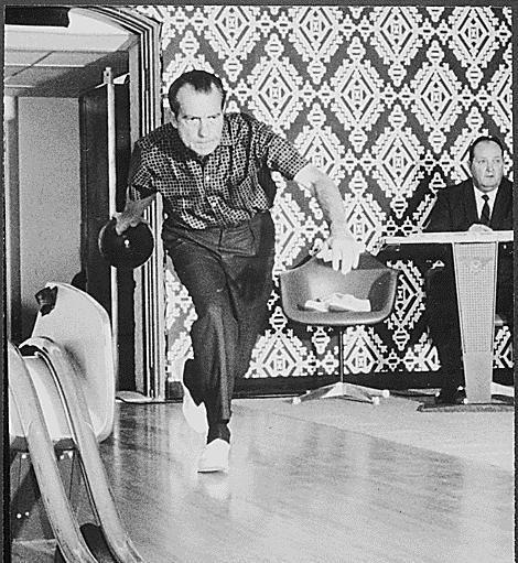 That bowling stock bubble deflated, but it took awhile longer for bowling to suffer in the real world. It was still popular in 1970, when then-president Richard Nixon, an avid bowler, had an alley installed beneath the White House. (The west wing of the White House got its first bowling alleys in 1947, but they were moved in 1955 to make way for a mimeograph room. The bowling facility put in by Nixon remains in place to this day.)