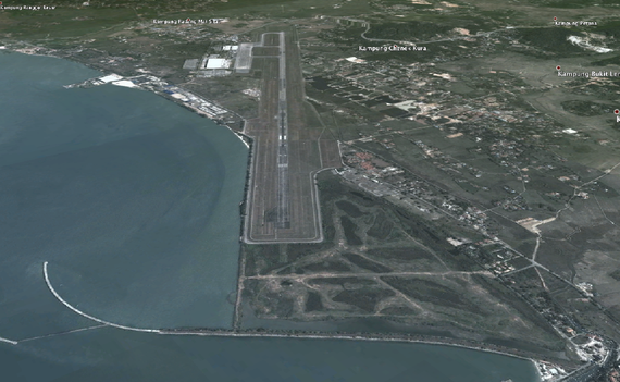 When trouble arose, Goodfellow says, the pilots tried to head for what they knew to be the nearest very long runway, with an unobstructed over-water approach, on the Malaysian island of Pulau Langkawi. (Pulau means "island.") Here's the Google Earth idea of how the Langkawi runway might look in daylight, although the plane was of course approaching at night. That runway is 13,000 feet long -- enormous.