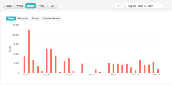 Some self-trackers stop tracking after they've solved a problem or introduced a new habit. I'm the type of tracker who sticks with tracking things long after they've taught me something useful. Once it becomes a part of my routine I stay with it. I've had my Fitbit for more than a year, I haven't ever lost it, and I only dropped it in the toilet once.