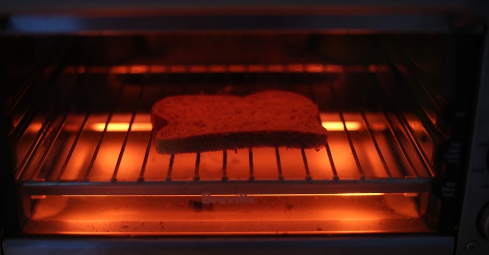 The paper demonstrates two really interesting things. One, there is a marginal environmental advantage to the wheat bread, but an even bigger boost comes from not toasting it. Apparently, given the relative inefficiency of toasting (which uses electric resistance heating), a major component of the carbon footprint of any given piece of bread is whether you heat it or not. So, what you see above are the extremes: toasted white bread (which is the most energy intensive) and non-toasted wheat bread (which is the least).