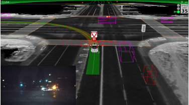“In this example, our car was stopped at a stoplight," Google wrote. “Our light had turned green, but we detected an ambulance approaching from the right (the purple rectangle with two little red and white symbols on top), so we remained stopped as it passed through the intersection.”