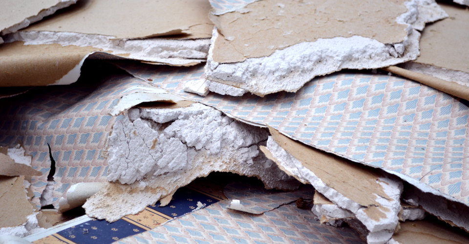 Drywall, also known as plasterboard or wallboard, consists of two paperboards that sandwich gypsum, a powdery white or gray sulfate mineral. Gypsum is noncombustible, and compared to other wall materials, like solid wood and plaster, gypsum boards are much lighter and cheaper. As a result, drywall is popular in homes across the U.S.: According to the Gypsum Association, more than 20 billion square feet of drywall is manufactured each year in North America. It's the staple of a billion-dollar construction industry that depends on quick demolition and building.