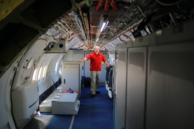 On board, I couldn’t help but follow the cords towards the back of the airplane until I ran into Stéphane Klander, who is an engineer working on Jetwave. He wore a red Honeywell polo shirt and straight leg khakis. He’s blunt, funny, less media-trained than his executive colleagues.