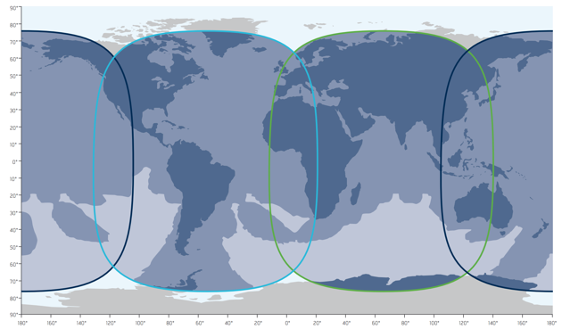 Klander showed me the detailed map of how the beams fall on the Earth. And it’s complicated! “Right under the satellite, they are very circular, but as we go along the world,” he said, “they are more elongated because there is more room for the RF [radio frequency] to use the space.”
