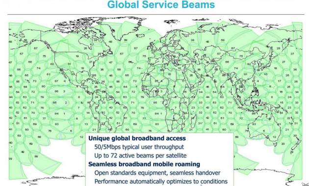 Inmarsat calls this particular satellite array Global Xpress. Each satellite uses dozens of beams that provide up to 50 megabytes per second of bandwidth to each commercial plane flying down on Earth.