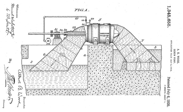 Construction of the new drainage system began in 1896 and accelerated in 1899, when voters overwhelmingly approved a two-mill property tax to create the New Orleans Sewerage and Water Board. By 1905, 40 miles of canal had been excavated, hundreds of miles of pipelines and drains had been laid, and six pumping stations were draining up to 5,000 cubic feet of water per second. System efficacy improved dramatically after 1913, when a young engineer named Albert Baldwin Wood designed an enormous impeller pump that could discharge water even faster. Eleven “Wood screw pumps” were installed by 1915, and many are still in use today. By 1926, over 30,000 acres of land had been “reclaimed” via 560 miles of pipes and canals with a capacity of 13,000 cubic feet of water per second. New Orleans had finally conquered its backswamp.