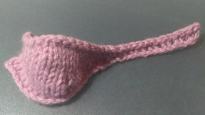 “There’s not a number of stitches that will work for all rows, so I started with 15 (the repeat done twice, plus the end stitch). Rows two, four, five, and seven didn’t have enough stitches, so I just worked the pattern until I got to the end stitch and worked that as written,” she posted to the forum. “Double yarn-overs can’t be just knit or just purled on the recovery rows; you have to knit one and purl the other, so I did that when I got to the double yarn-overs on rows two and six.