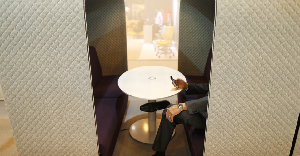 This is all part of the mostly fruitless search for a technology that might make open offices less miserable. For example, some researchers are looking into “natural” white-noise sounds, like flowing water, to muffle office sounds, or large, felt “isolation cones” that would hang from the ceiling and provide temporary privacy.