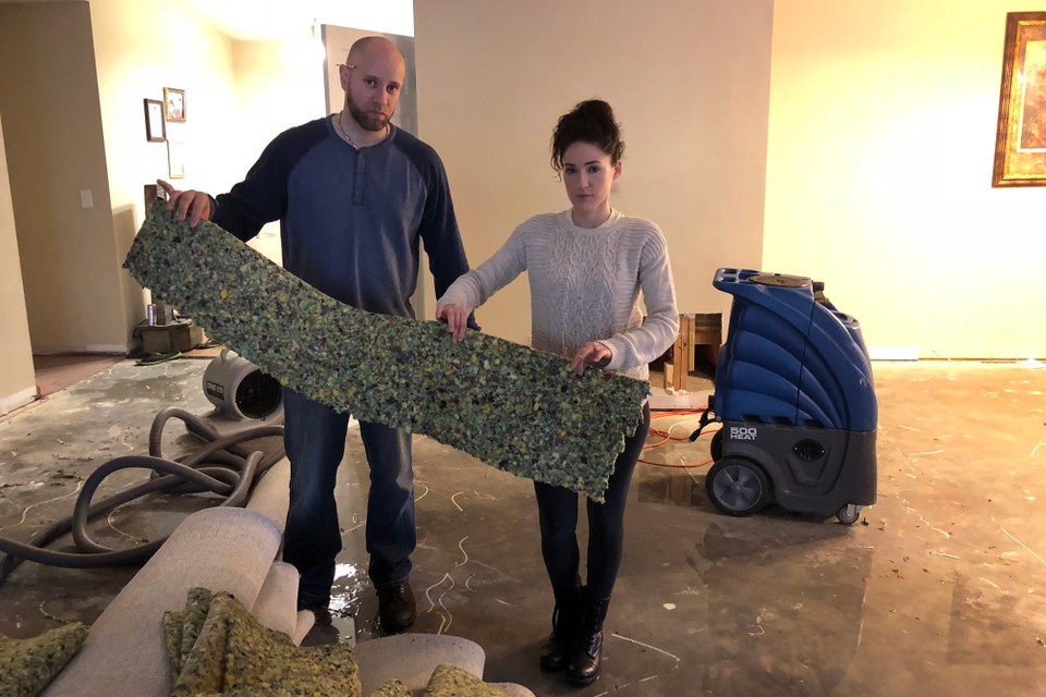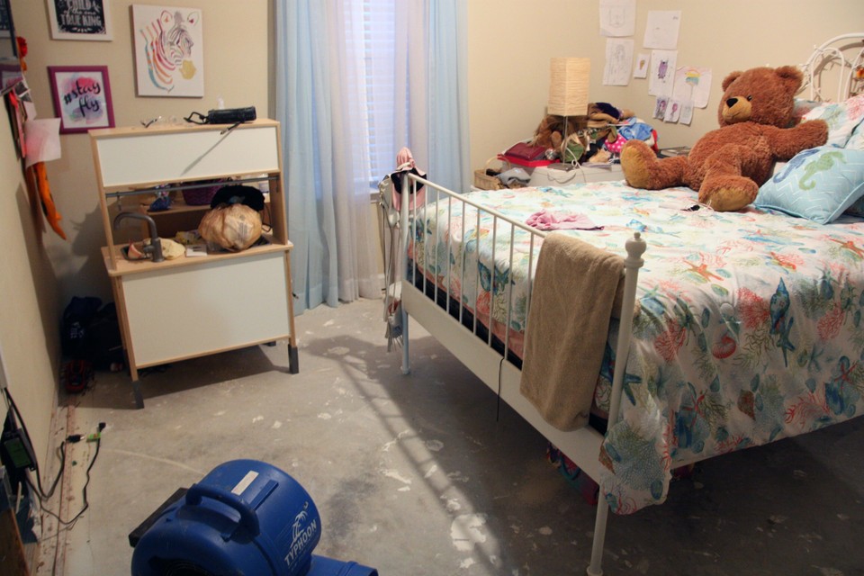 A few hours later, another contractor showed up in a Honda Civic. With Invitation’s permission, he started pulling up the drenched wall-to-wall carpet and knocking down walls, leaving exposed nails and dust throughout the house, the Valentins told me. It was slow-going—the contractor didn’t know much about drywall, Rene said, and he was working alone. He set up industrial fans to dry out the wet concrete floor and advised the Valentins to wear masks if the dust bothered them for the next few weeks.